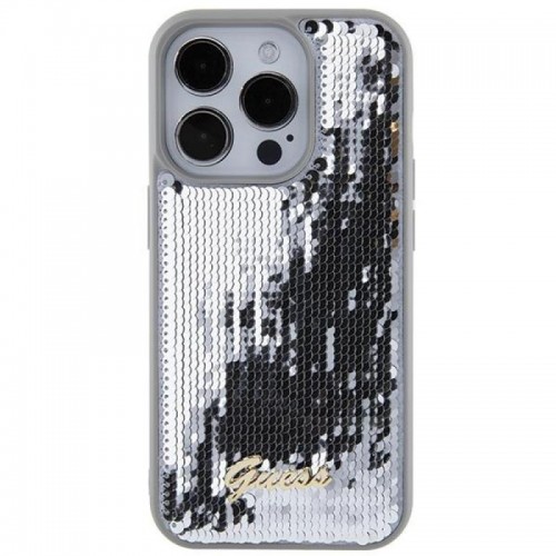 Husa Guess compatibila cu iPhone 15 Pro Max, Sequin Script Metal, Silver